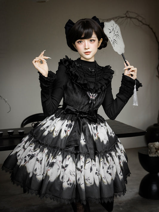 Tulle Umbrella Shawl Shell + Floral Charms Pattern White Skirt Urban Goth with