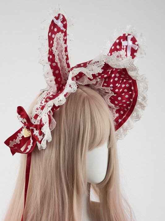 Ruffled Heart Red Bonnet Polka-Dot Lace Charm with Bunny-Ear