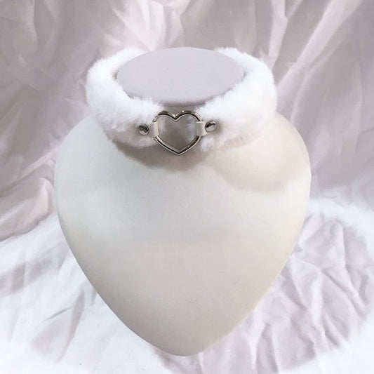 White KC Kitty Heart Black Decorated / Choker Ear Pink Set Bell Buckle Bowknot Plush +