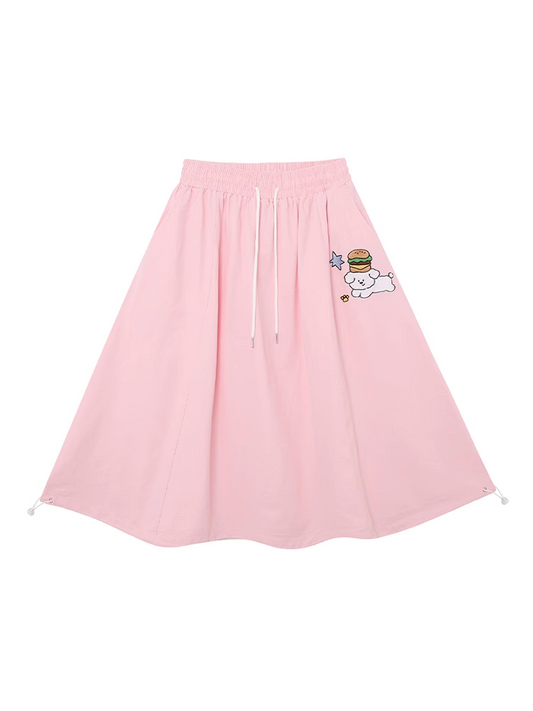Rock A-Linie Rosa Kordelzug Taille Niedliche Welpen Stickerei