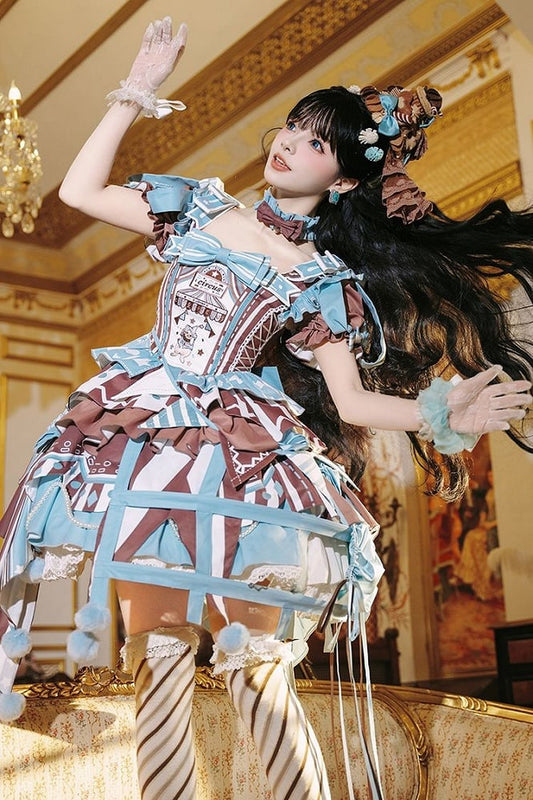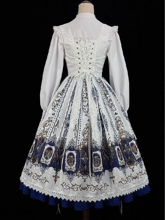 Lolita Candelabras Bat Dress Blue Print White JSK Wings Gothic Dark Drawstring