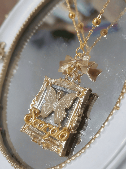 Frame Vintage Pendant Necklace Lolita Golden Butterfly