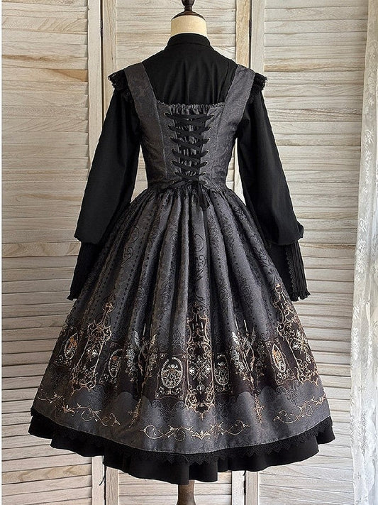 Gray Candelabras Wings Dress Bat Lolita JSK Print Drawstring Gothic
