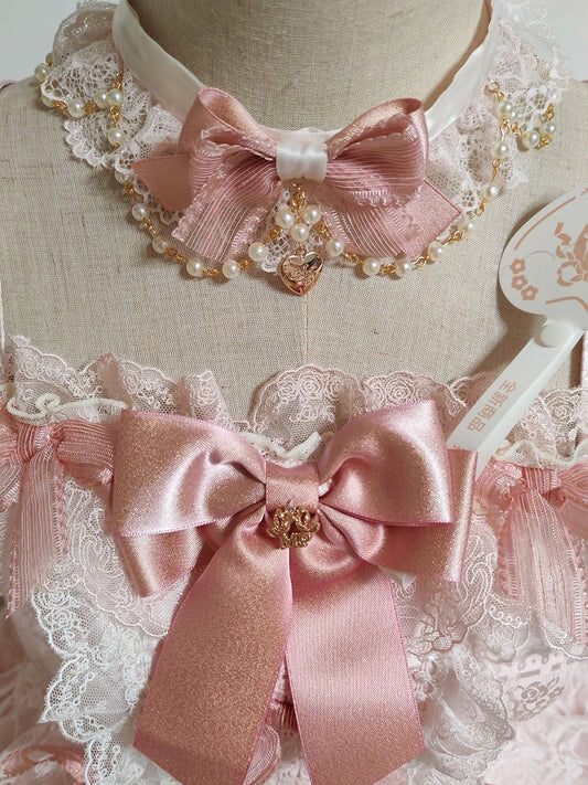 Choker Flower Lolita Sweet Pink Lace Pearl Bowknot