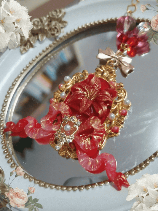 Cameo Vintage Pendant Necklace Lolita Red-Gold Flower