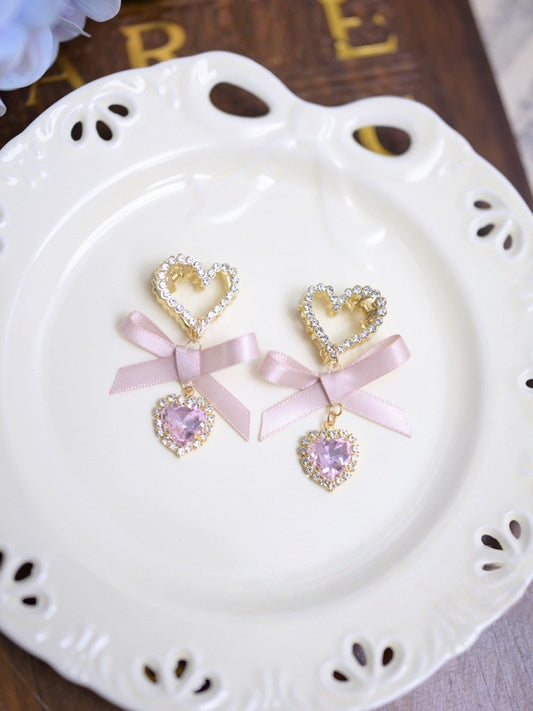 Jirai Rhinestone 4 Earrings Kei Bow Colors