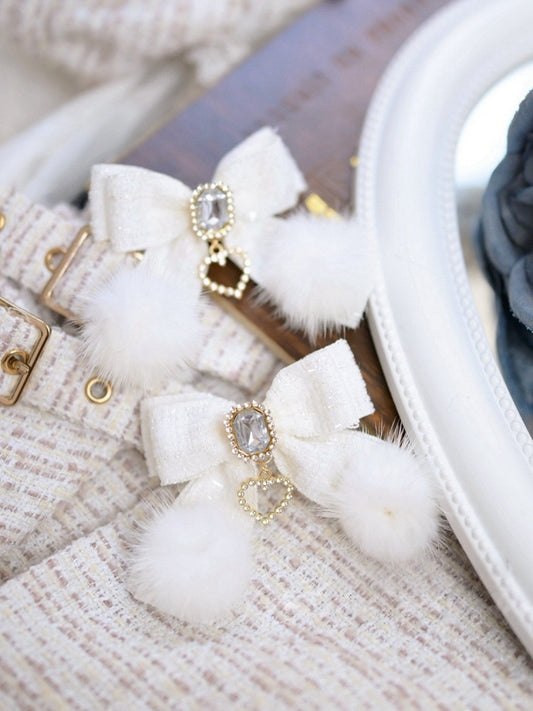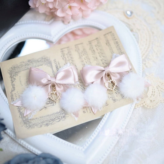 Charm Kei Clip with Heart Tweed Pom-pom Hair Bow Colors 4 Jirai
