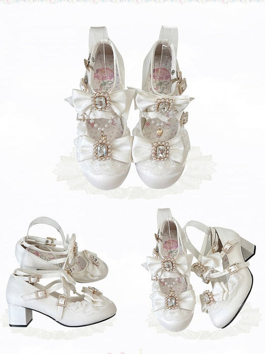 Bead with Heart Accents White Mary - Chain Janes Crystal Beaded Detachable Elegant Charm Lolita
