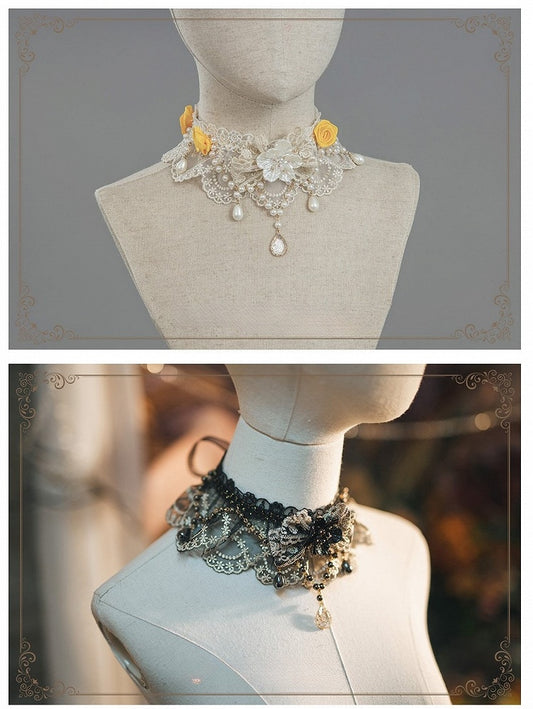 5 Lolita Options – with Choker Floral Lace Bead Accents Color