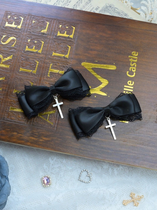 Clip Bow Lace with Kei Pink/Black Cross Charm Hair Jirai Black