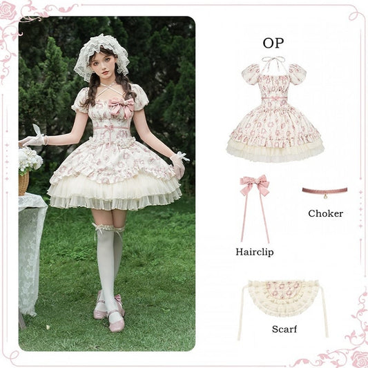 Set Akzente Sweet Lolita Idol Pink Neck Bow Dress Neckholder Sakura / JSK Full