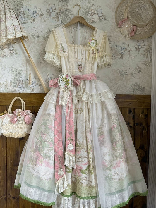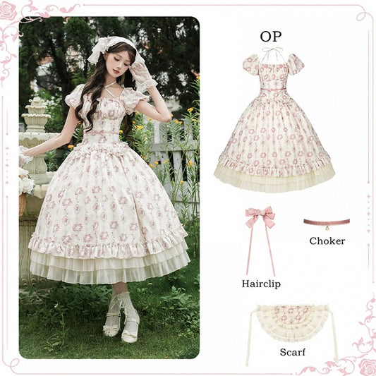 Lolita Elastic Version Set Voller klassischer langer Rosettenausschnitt Print Square OP