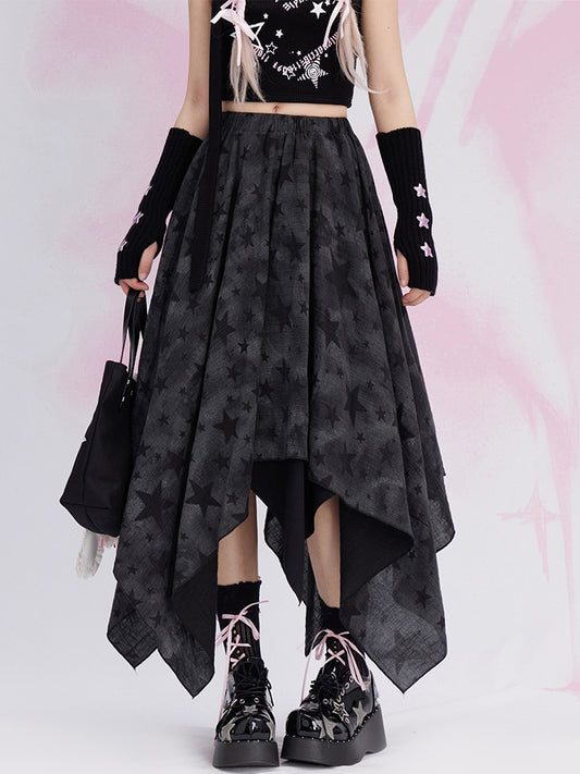 Schwarzer Y2K-Rock mit Taschentuchsaum und Sternen