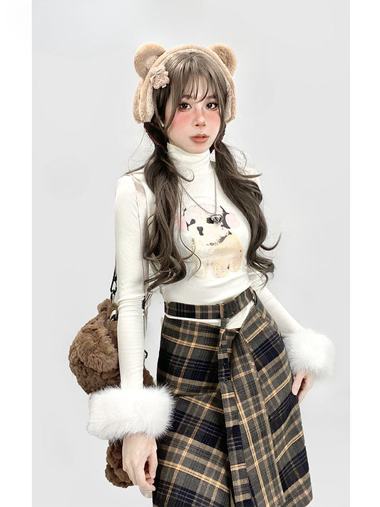 Y2K Apricot High Neck Puppy Glamouröses Top mit abnehmbaren Plüschbündchen