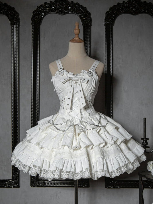 Weißer Lagenrock Shiro Hanayome Kleid Süßer Hime Lolita Pulloverrock mit abnehmbaren Schleifen