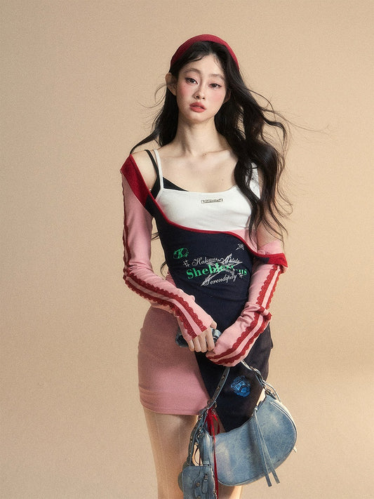Taille Patchwork Design Glamouröse Rosa Kleid Hohe Mini