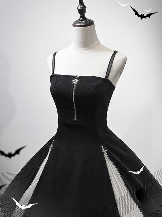 Taille Dünne Schulter Lolita Träger Gothic Fit Slim Kleid Schwarz