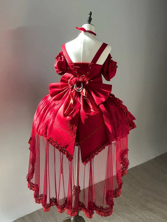 Taille Blume Basken Saum Fee Rock Kleid Pullover Tiered Rot Lolita Hanayome