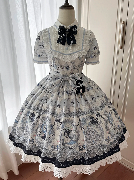 Süßes Wunderland und Kitty Lolita im Einteilerkleid mit einem Aufdruck, Alice-Thema, Hase