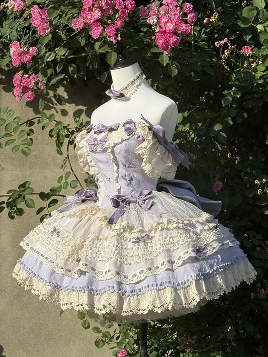 Rockkleid Lolita Neckholder Basken Taille Abnehmbar Qi Lila Stufen