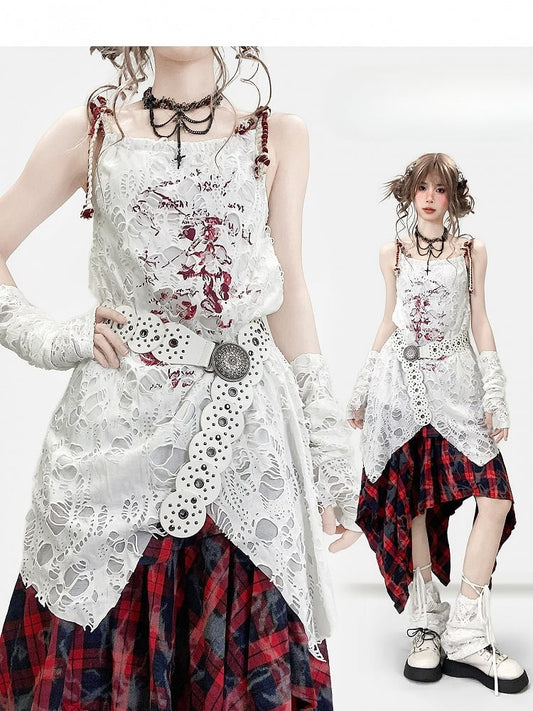 Rock Cami Kleid Taille Kette Süße Weiße Spitze Tiered Frei mit