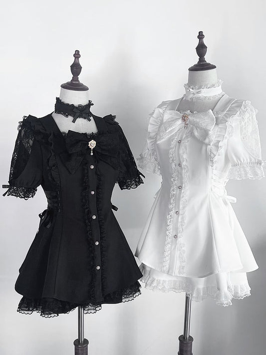 Shirt Collar White Dress OP Sleeves Gothic Set Lolita Juliette Short