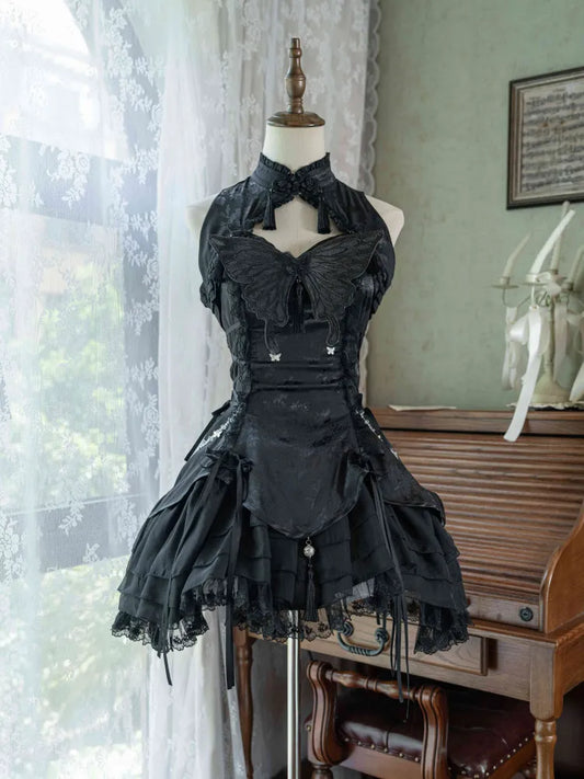 Ärmel Schwarz Butterfly Qi mit Thema Lolita Kragen Banded Qipao Kleid
