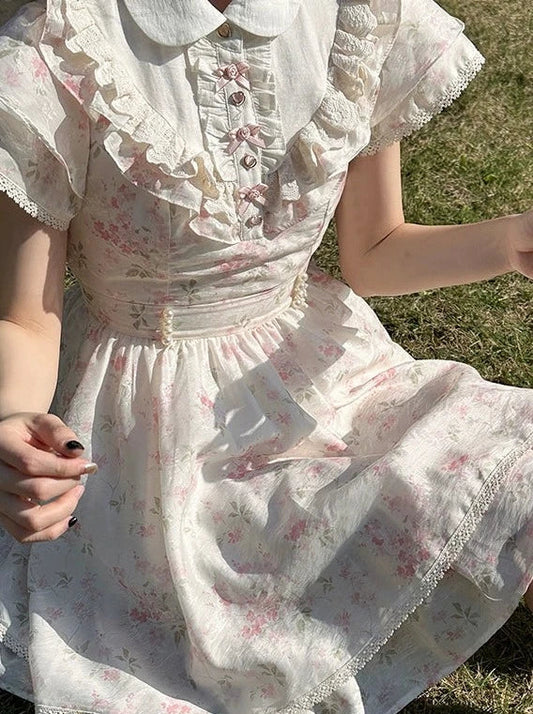 Rose Spitze Blume Fee Kleid Druck Französisch