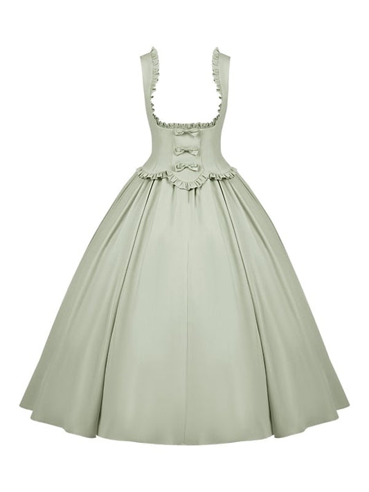 Mori Kei Camisole mit selbstbindenden Trägern und grünem Taschentuchsaum an den Kleiderschultern