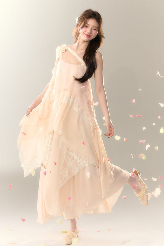 Roselle Unregelmäßiges Kleid Langer mehrlagiger schwerer Rock