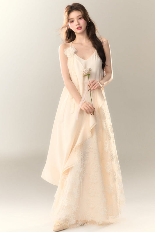 Rüschenspleiß Creme Straps Ice + Cardigan Kleid