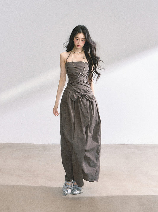 Pink/Graues Neckholderkleid mit Rüschendesign und Schleife zum Selbstbinden