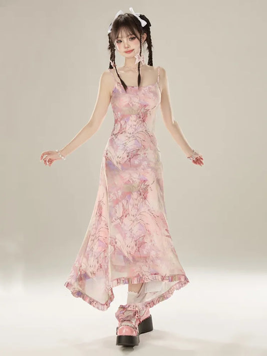 Rosa Prinzessin Fee Blumenmuster Set voller Schmetterling und JSK Kleid Lolita Blume