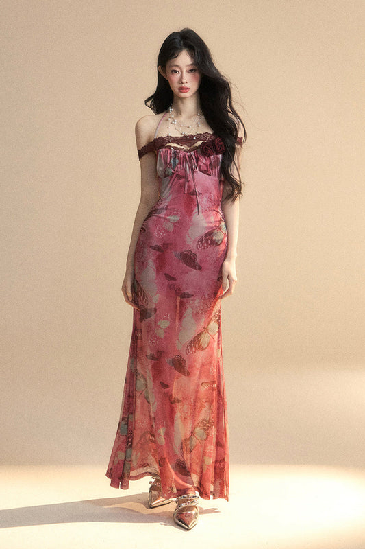 Rückenfreies Maxikleid aus Spitze