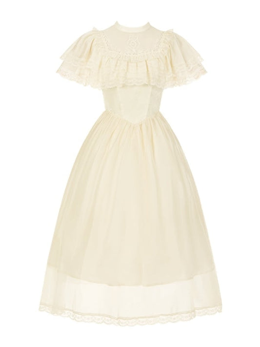 Kleid Beige Elegant One Edward Illusion Lolita Stück Quadratischer Ausschnitt Taillenausschnitt Basken