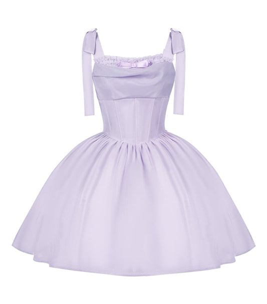 Lila Lolita-Kleid mit Stäbchen, Pullover, Rock, schimmernder Stoff, Taillen-Basque