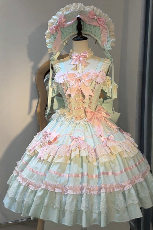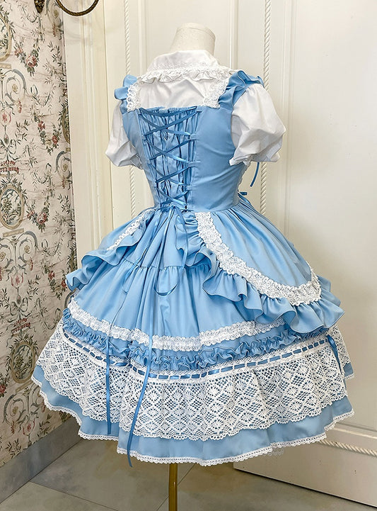 Blaues Kleid Bowknots Süßer Rock Balletcore Lolita Jumper Verziert