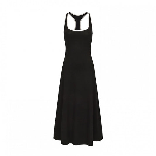 Schwarzes rückenfreies ärmelloses Kleid Slim Fit Strick