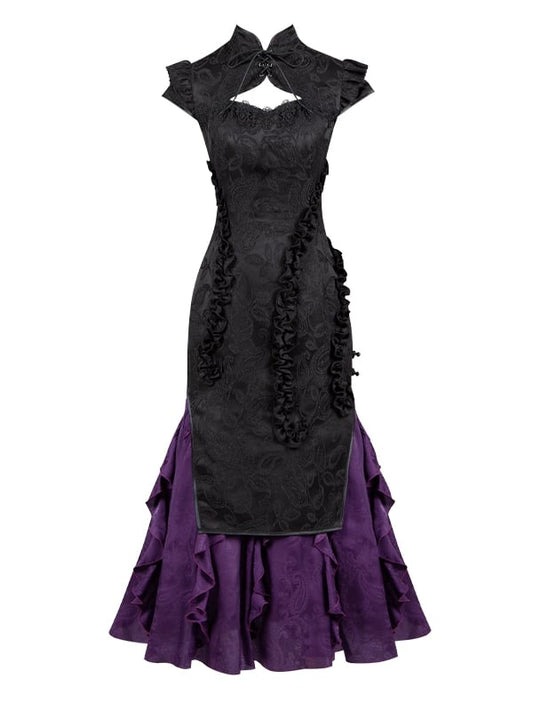 Voller Jacquard-Saum Qi Rüschen Set Schwarz Qipao Cthulhu Lolita Kleid Vibes Lila Trim Cascading