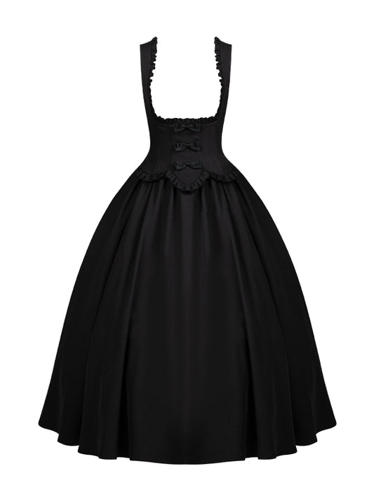 Schwarzes elegantes Lolita-Kleid mit Rüschenbesatz unter der Brust