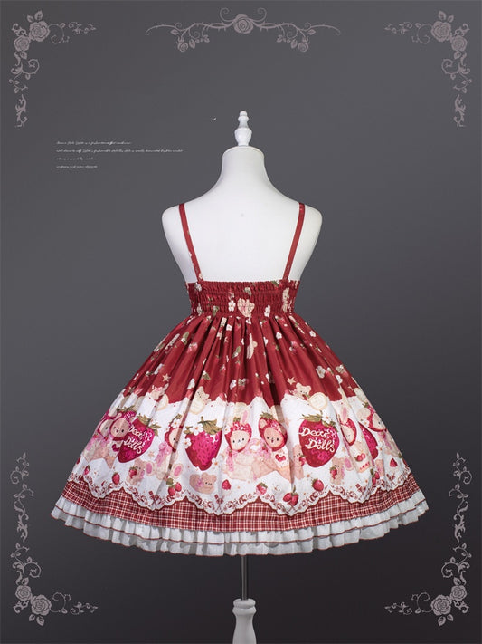 Weinroter Erdbeerbär Süßes Lolita Kleid Cottagecore Country Jumper Rock
