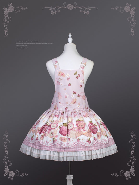 Rosa Erdbeerbär Süßes Lolita Kleid Cottagecore Country Pullover Rock