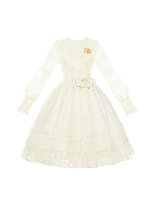 Beiges, halbtransparentes, elegantes, klassisches Lolita-Kleid mit Harfenstickerei im Frühling