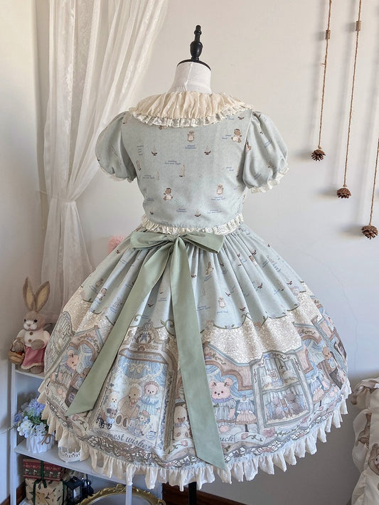 Grünes süßes Teddy-Lolita-Kleid, gefälschtes zweiteiliges Design