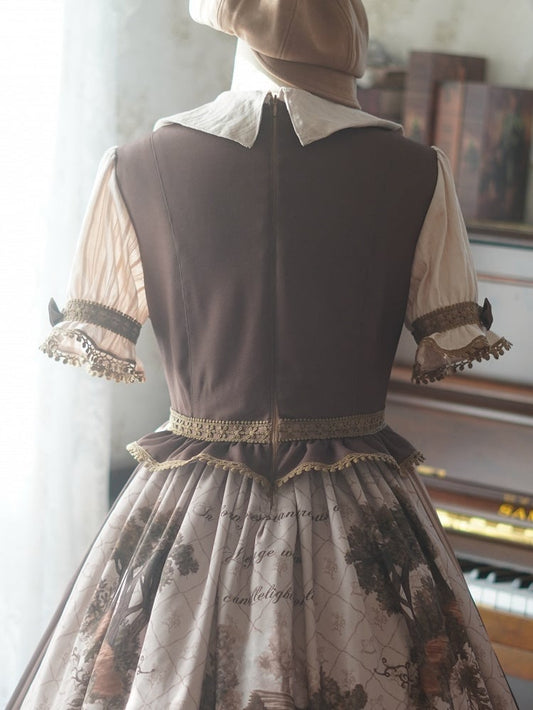 Braunes Weste-Mieder-Baumhaus-Lolita-Kleid, gefälschter Zweiteiler, Lolita-Einteiler