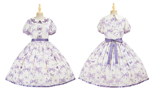 Lila Lolita-Kleid mit Schleife und Peter-Pan-Kragen, Schleifen und Schmetterling, einteilig