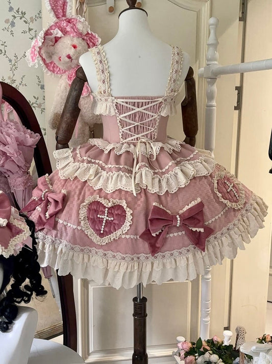 Rosa Lolita-Kleid mit Schleifen und herzförmiger Applikation