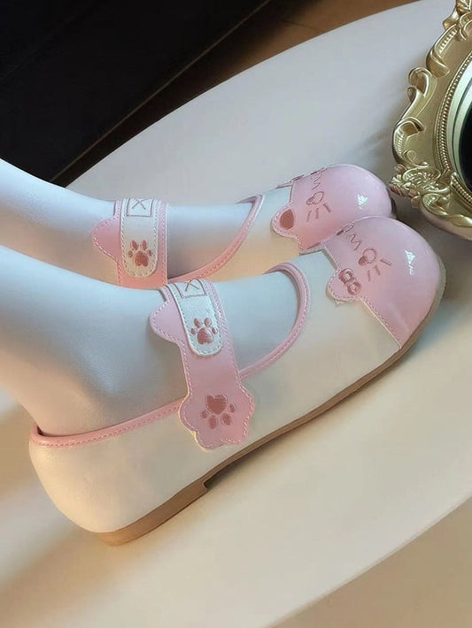 Lolita Design Ear Cat Toe Sweet with Velcro Stitching Red Flats Round Paw