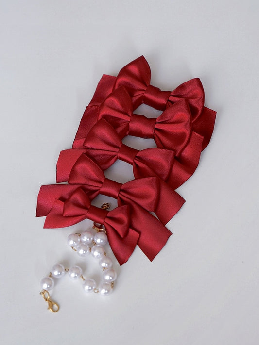 Rosa Lolita Haarspangen mit großer Schleife und Herz und Strass-Anhänger