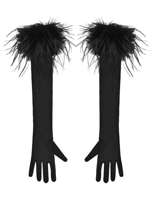 Schwarze, flauschige Handschuhe im Gothic-Stil
